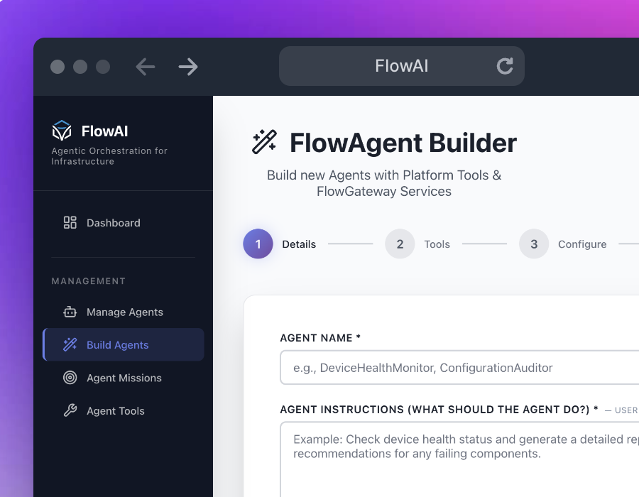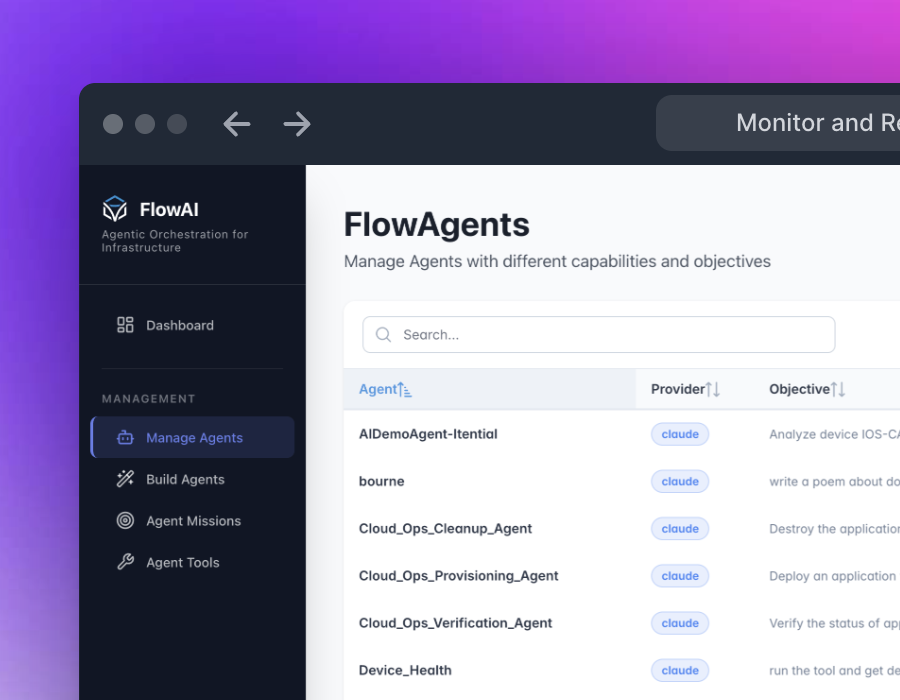 FlowAI is the next evolution of the Itential Platform, bringing agentic orchestration to hybrid infrastructure by connecting reasoning intelligence with deterministic, fully governed automation. It introduces a unified set of agentic capabilities that help enterprises explore and adopt infrastructure AI in a safe and production-ready way.