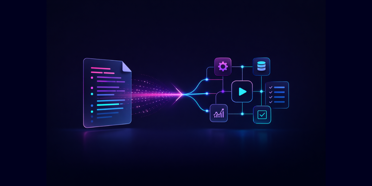 The idea is simple: focus on the what, not the how. Define your use case, including the entry point, the inputs, the workflow logic, the expected outcomes, and the error handling, then let the AI handle the translation into working platform assets.