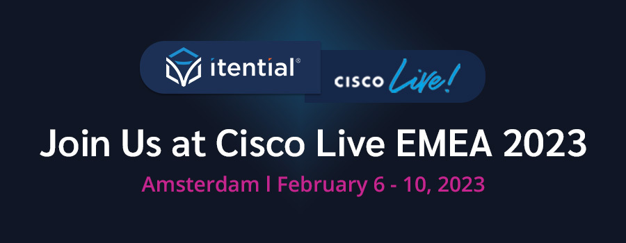 Join the Itential team at this year’s Cisco Live 2023 in Amsterdam! We’re excited to meet with you in person and demo how our patented technology drives innovation to operationalize your network automation and orchestration strategy for scale. As the leading automation platform for NetDevOps teams, we’ll showcase how you can rapidly build network automations that integrate across your multi-domain, hybrid cloud infrastructure.