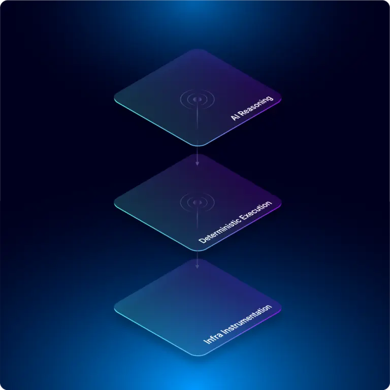 AI agents diagnose issues, reason through remediation paths, and execute fixes autonomously – reducing incidents from hours to minutes.