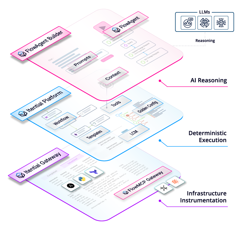 Itential has been building the orchestration foundation that makes agentic operations production-safe since 2013. While many vendors are adding “AI features” to existing tools, Itential provides the deterministic execution and governance layer that enterprise infrastructure requires – the control plane that sits between AI reasoning and infrastructure action.