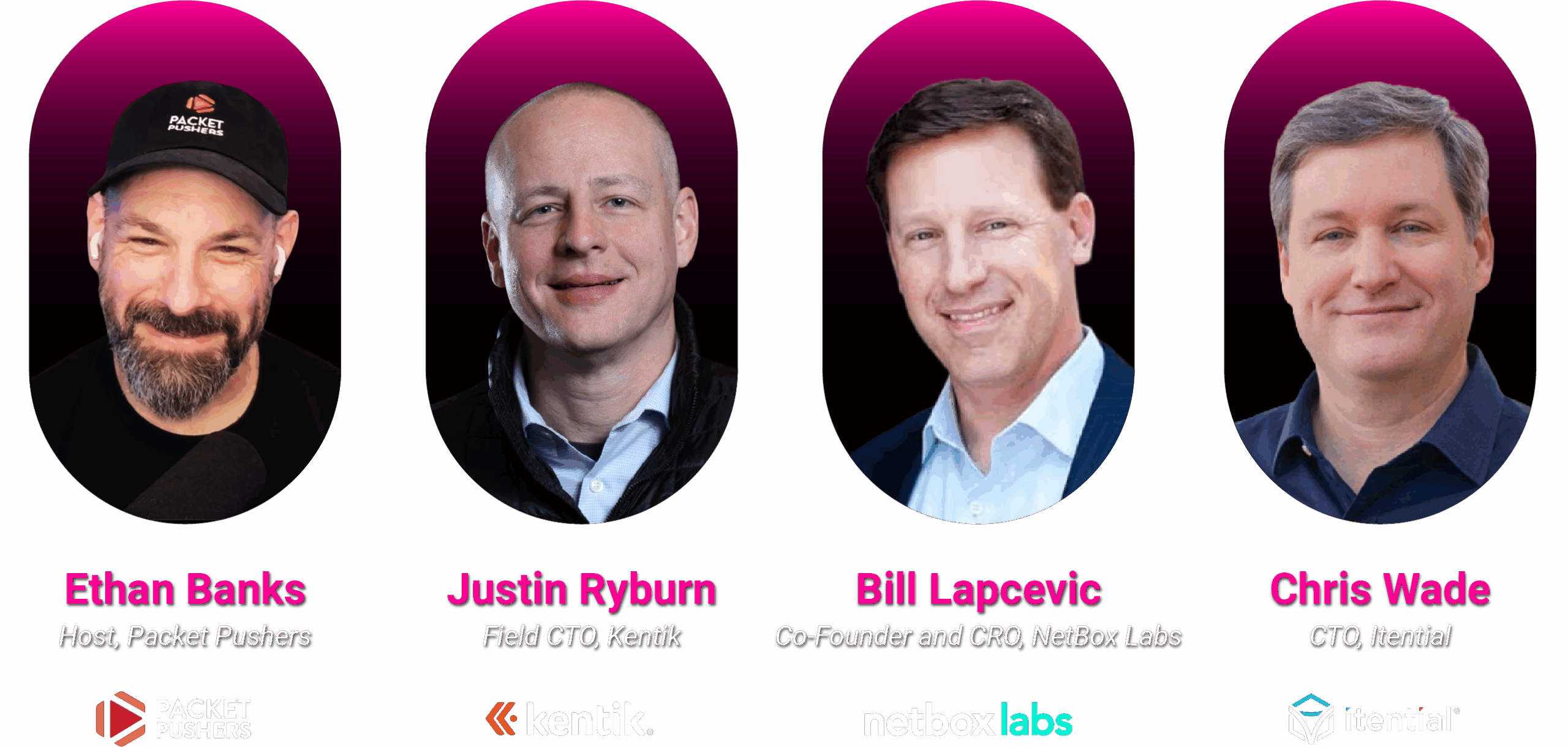 Justin is the field CTO at network intelligence company Kentic. Chris Wade, Chris, raise your hand. Chief Technology Officer and co-founder of Itential, where he leads the company’s technology strategy and product innovation. And you might have been inspecting Chris Beavers if you were looking at your notes, but he had life intrude at the very last minute, was not able to make it to Nanog. So Bill Latrovic has ably stepped in for Chris. Bill is the co-founder and chief revenue officer at Netbox Labs. Okay, guys, our panel is entitled Network Automation, Not Just About Configuring Network Devices.
